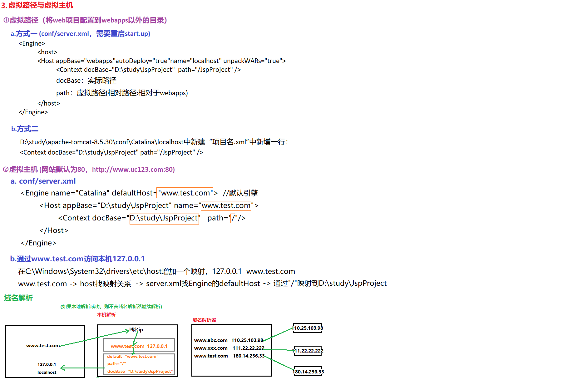 www.test.com->host找映射关系->server.xml找Engine的defaultHost->通过"/"映射D:\study\JspProject