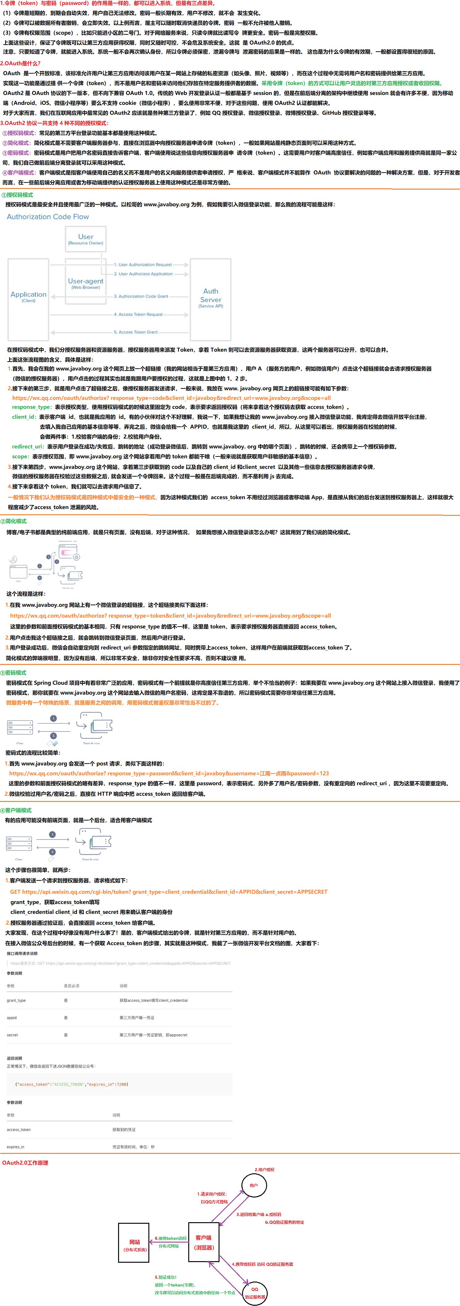 密码模式:一般在内部系统中使用,调用者是以用户为单位