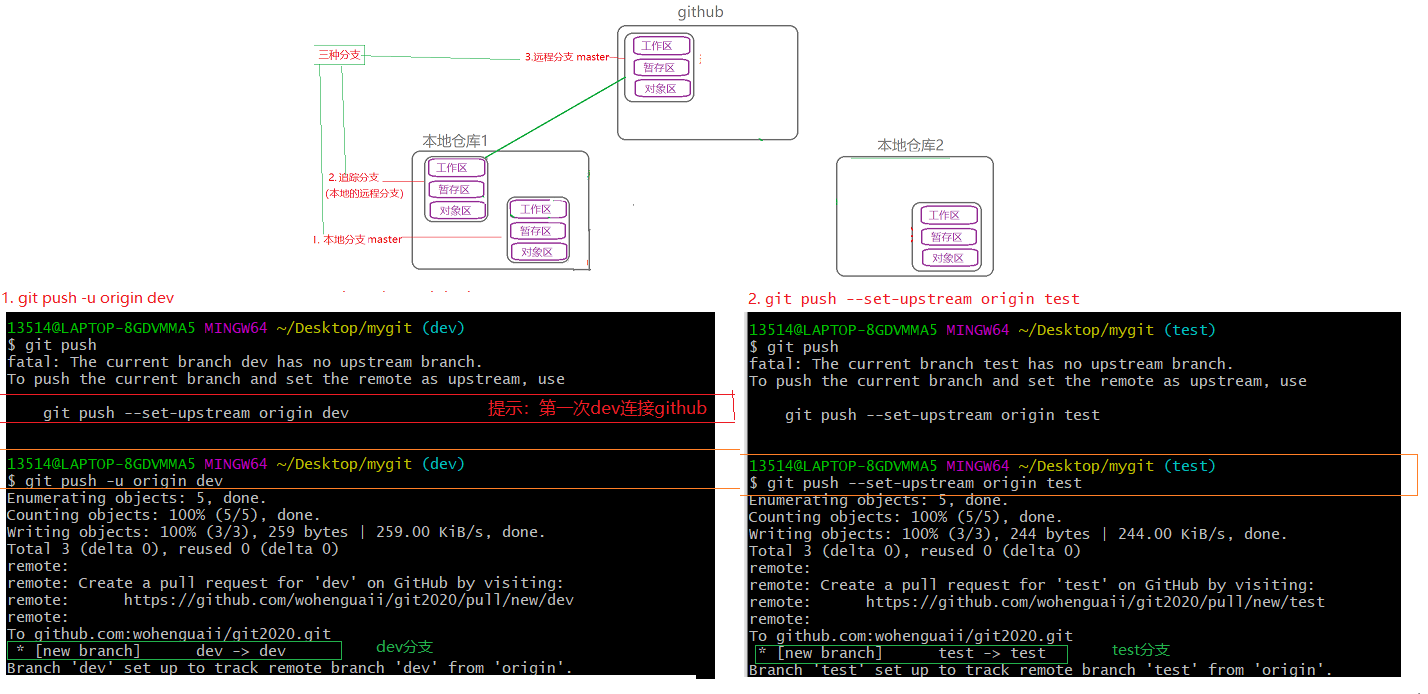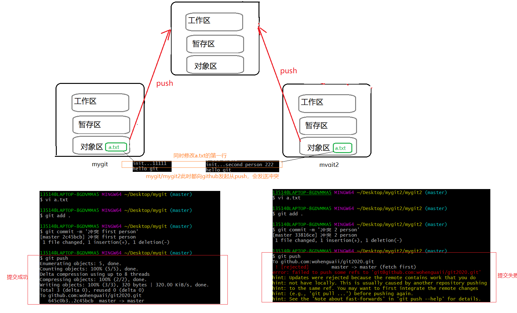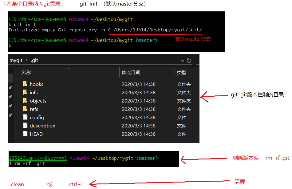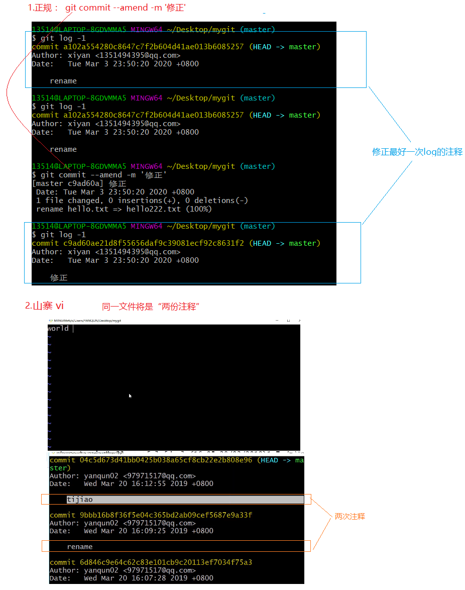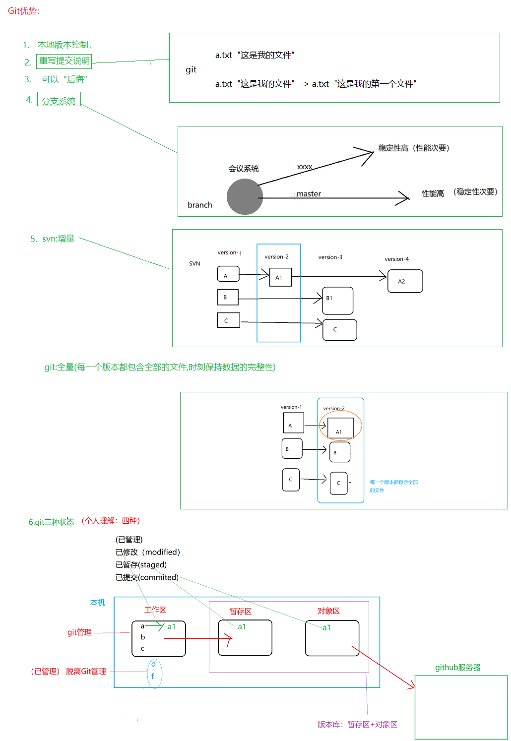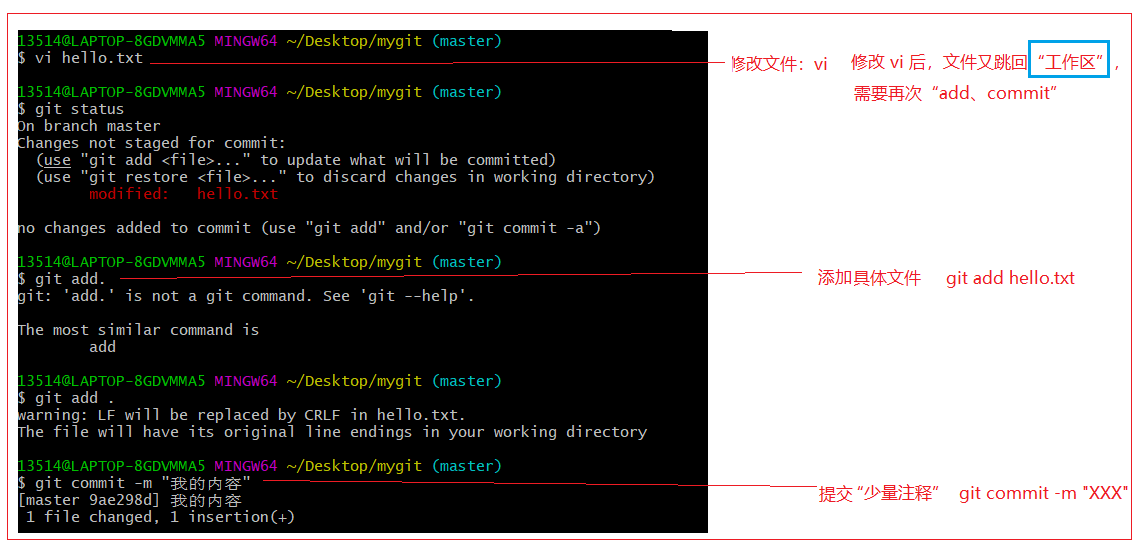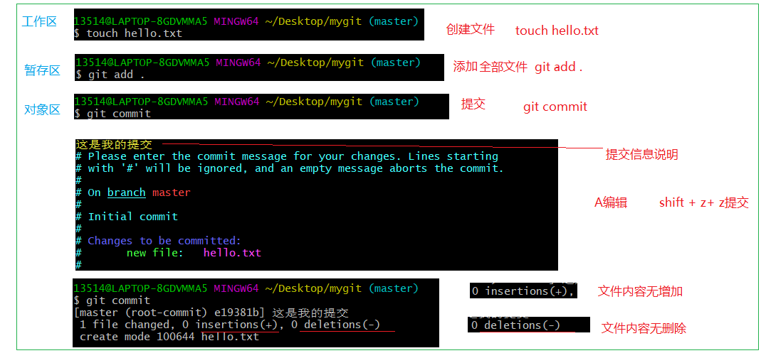 git commit -m "注释内容" //暂存区-本地分支(默认master)