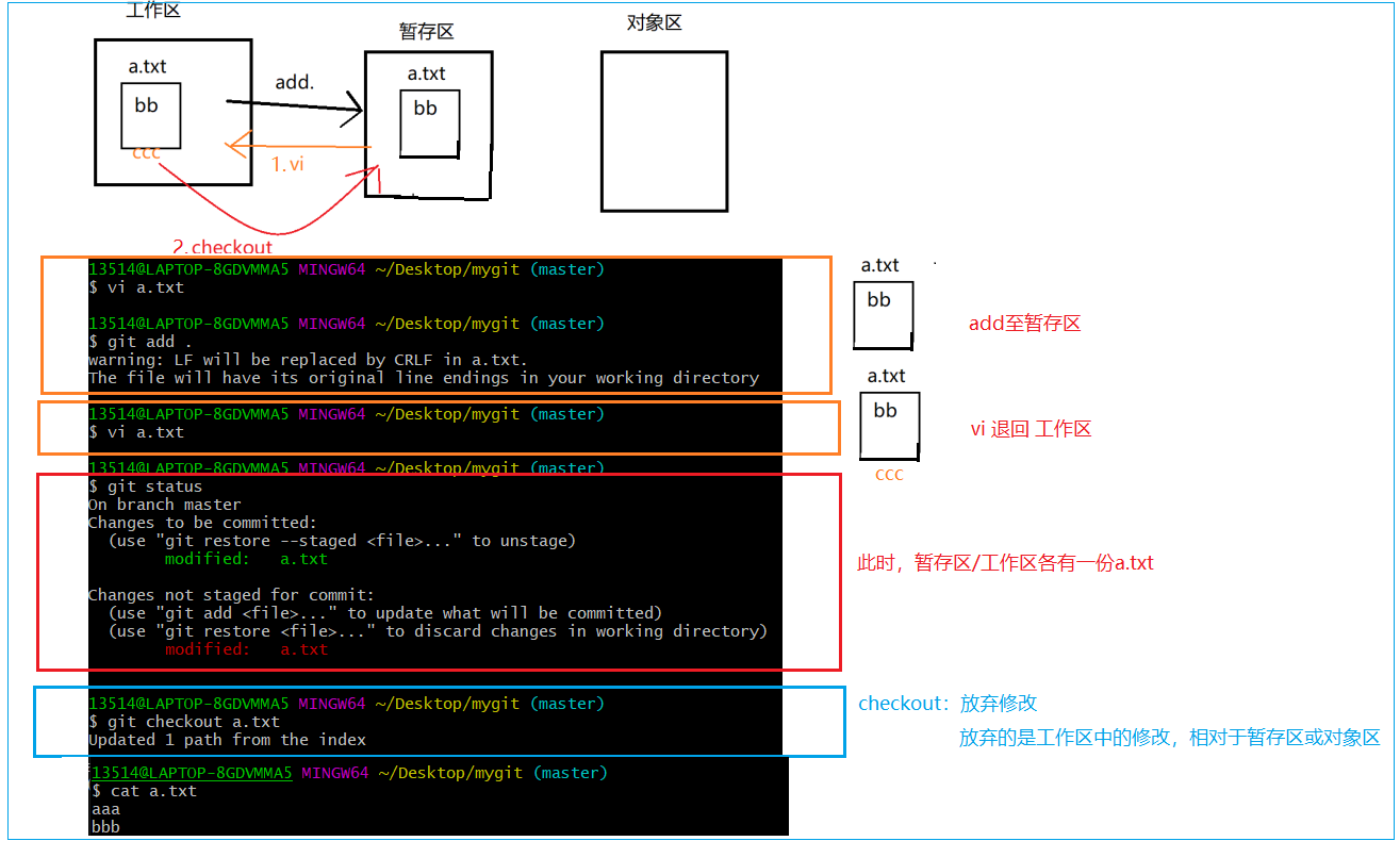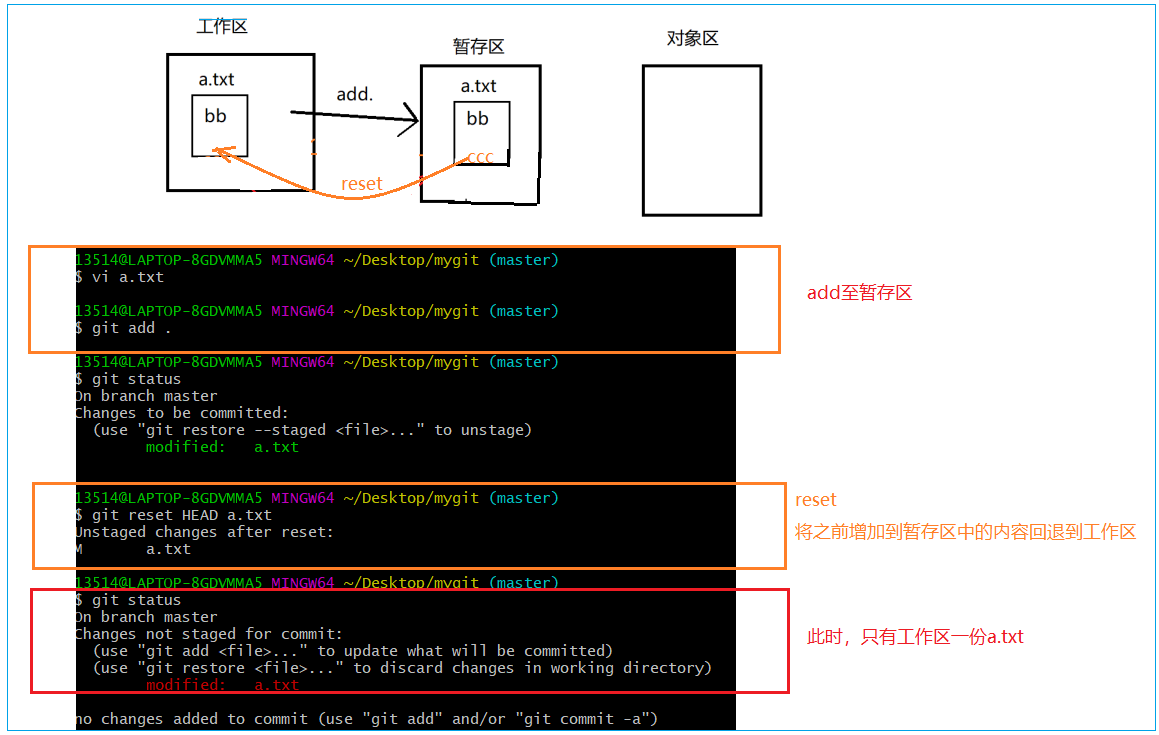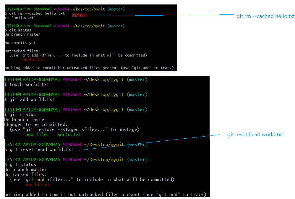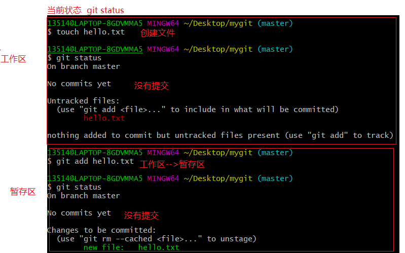 git add . //文件-暂存区 .代表当前目录的所有文件