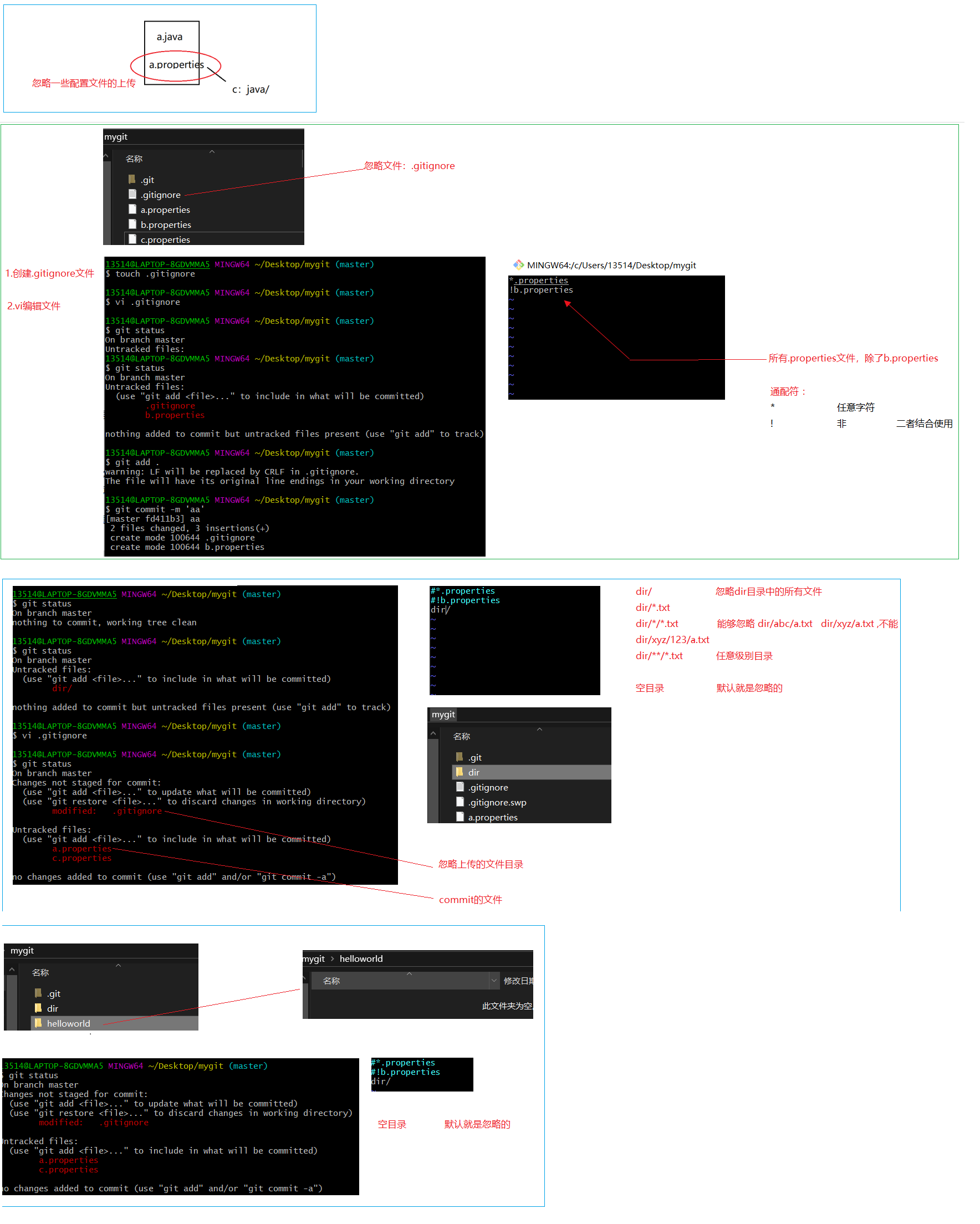 git add * 全部文件(不符合git语法, .gitignore忽略文件也会上传)