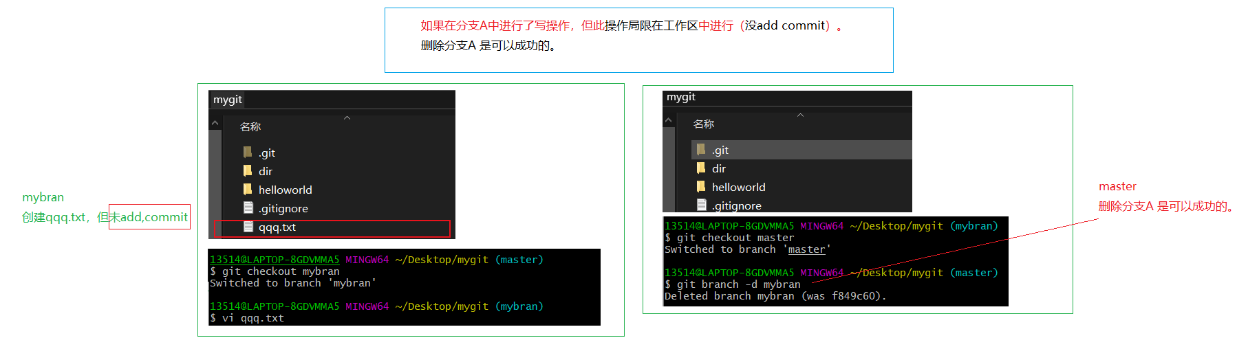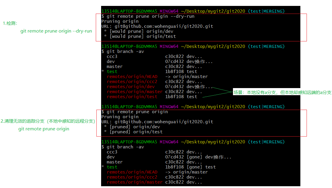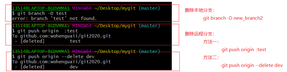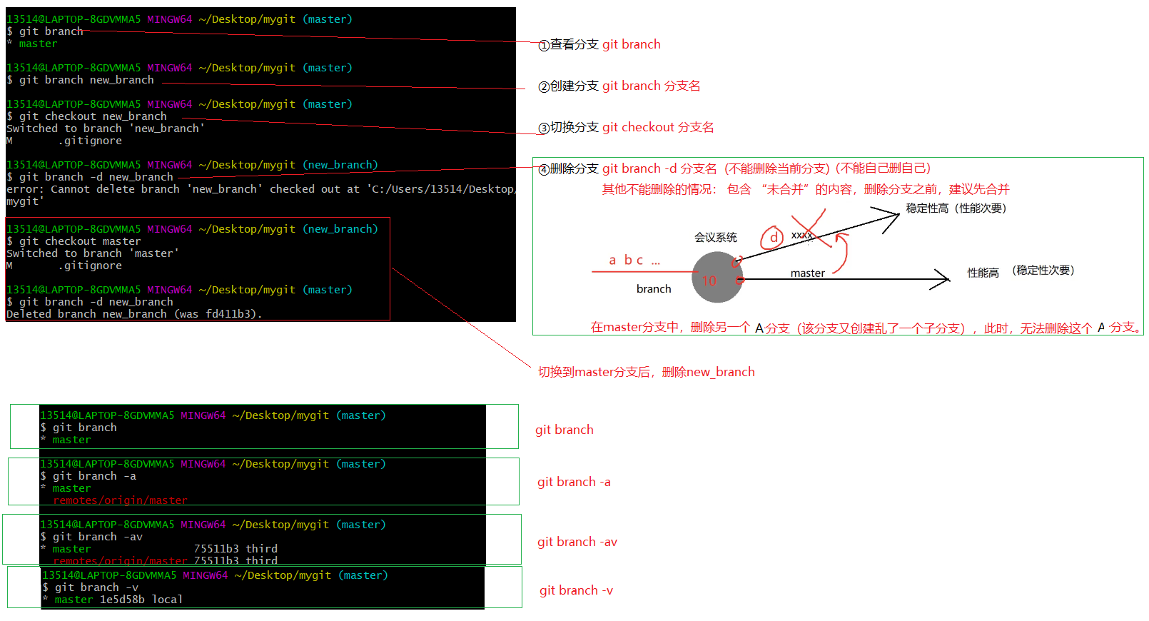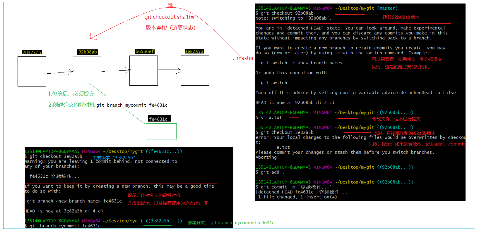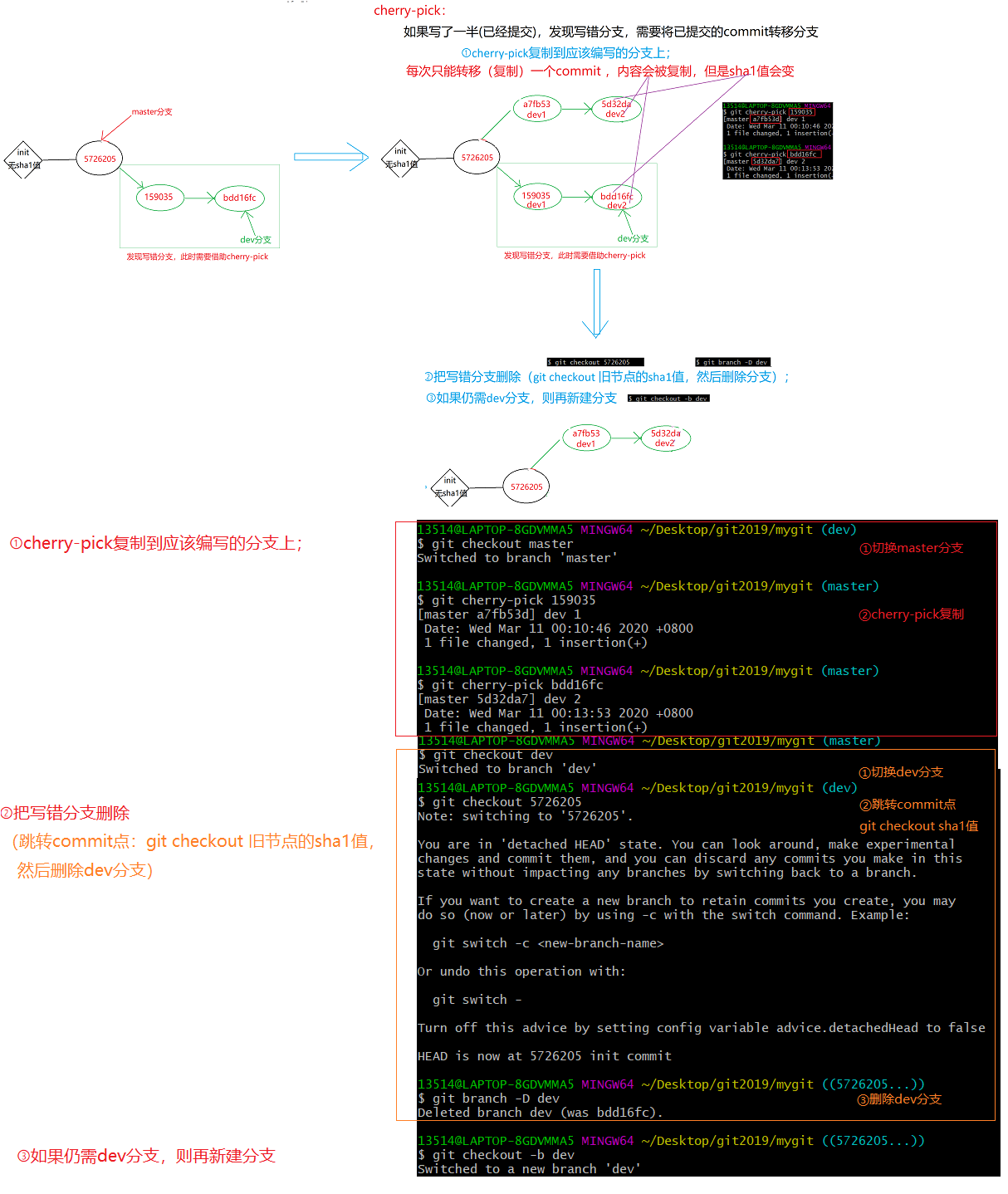 b.把写错分支删除(git checkout 旧节点的sha1值,然后删除分支)