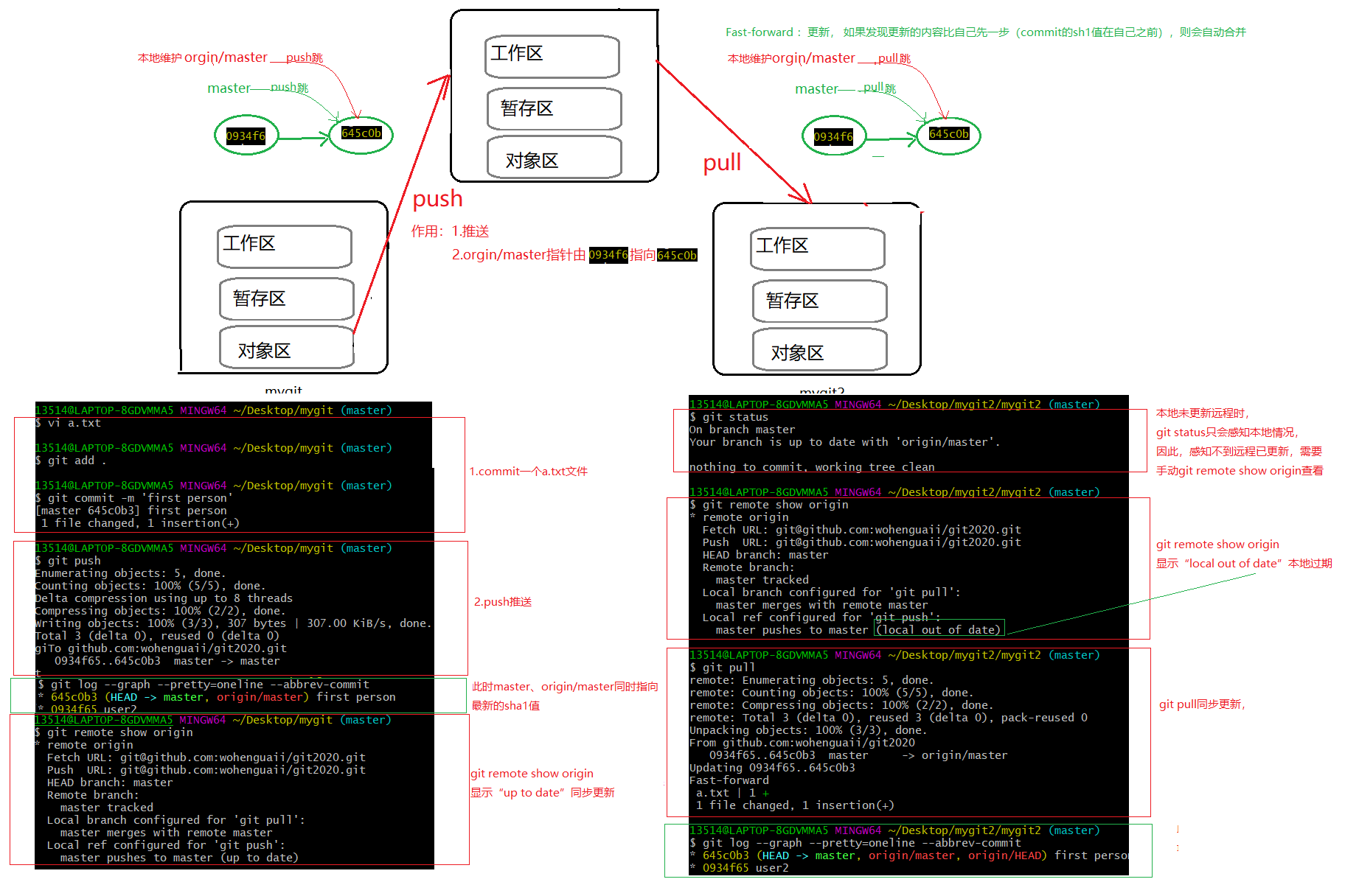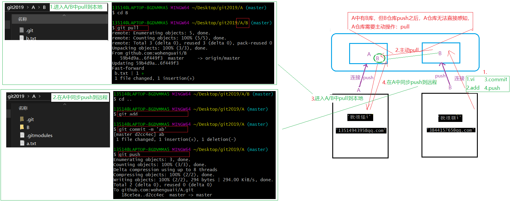 8.2.3.1 进入A/B中pull到本地,并在A中同步push到远程