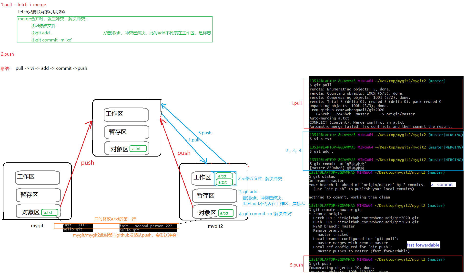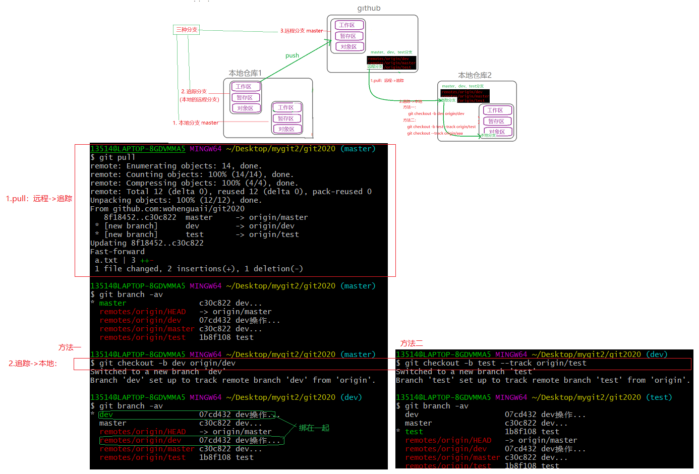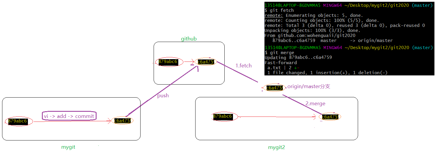 8.2.3.2 直接在A中迭代pull到本地,并在A中同步push到远程