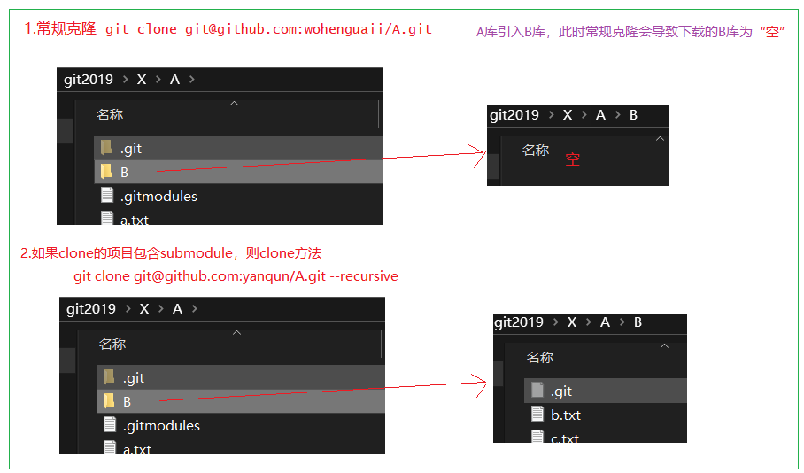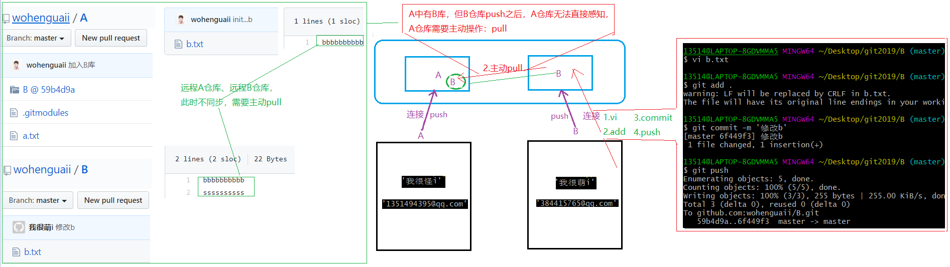 8.2.3 A中有B,但B库修改并Push之后,A库无法直接感知,A库需要主动Pull