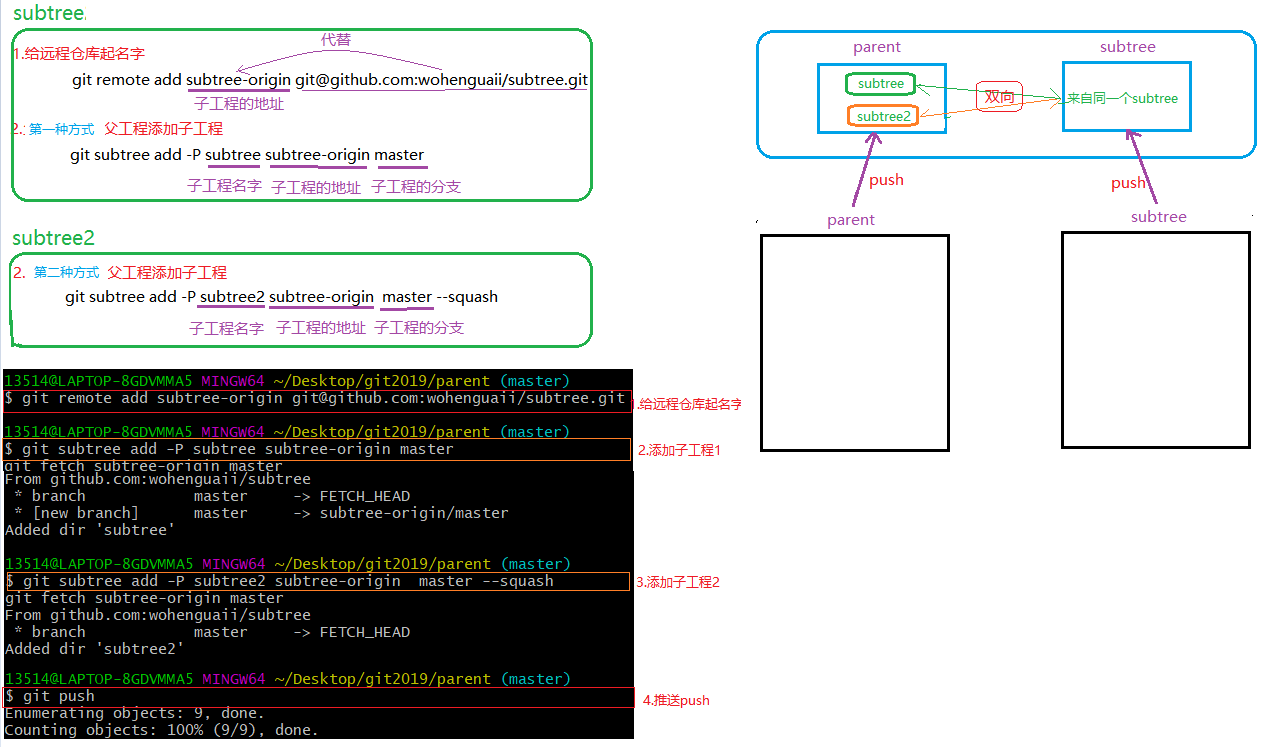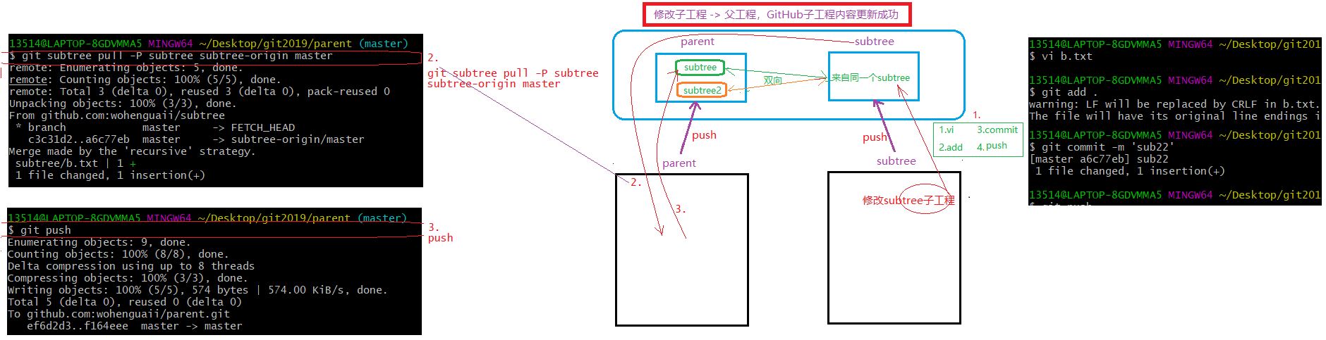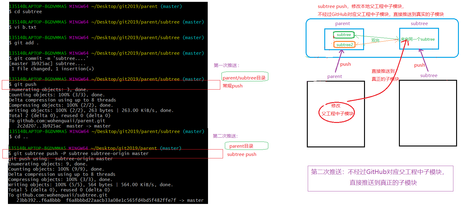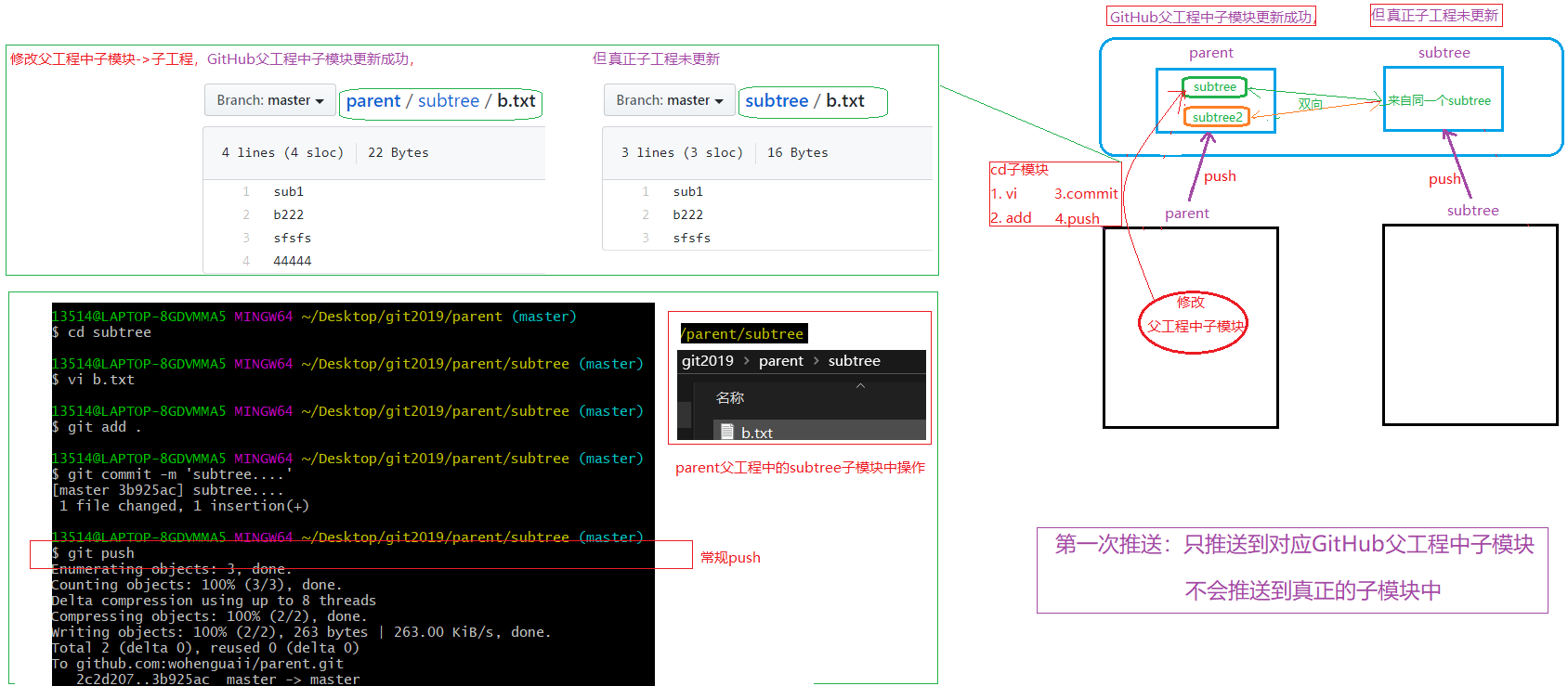 8.3.4.2 subtree push,修改本地父工程中子模块,不经过GitHub对应父工程中子模块,直接推送到真正的子模块