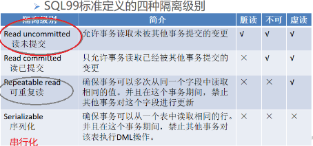 事务的隔离性可分为四种 ( 性能从低到高 ) :