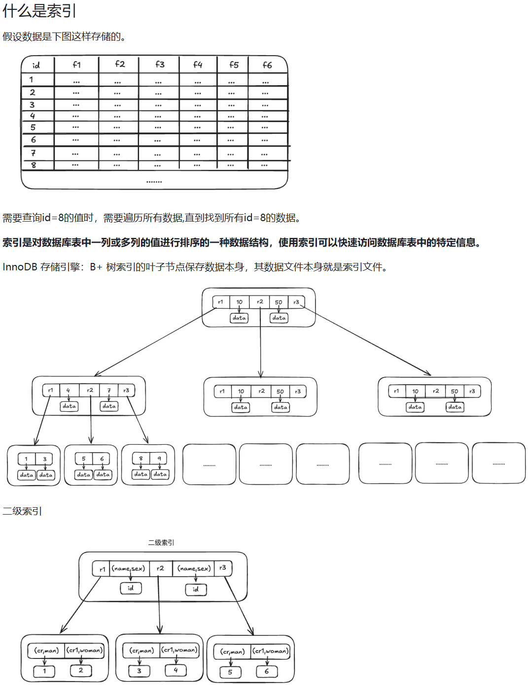 当然,最左前缀也可以是字符串索引的最左M个字符。。比如,你的普通索引树是这样:
